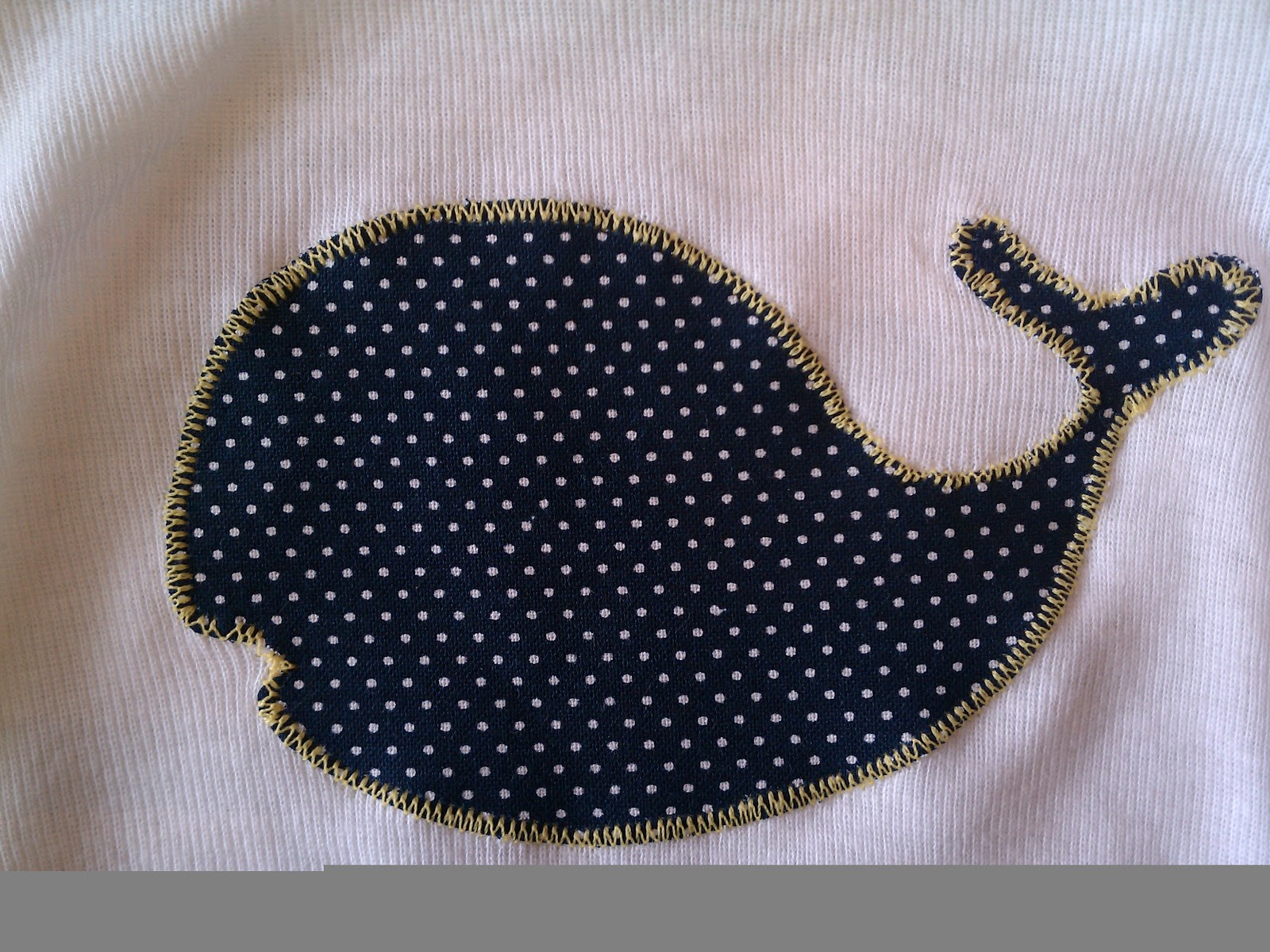 I picked out some bright yellow thread and zigzag stitched on the perimeter of Mr. Whale. In person, it's a super cute color pop.